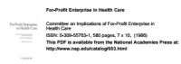 For-Profit Enterprise in Health Care was stimulated by concerns among members of the Institute of Medicine (IOM) and others that health services—already heavily dependent on monetary transactions through prepayment and insurance—will become excessively commercialized, with growing ownership by stockholders. The issues closely associated with these concerns are examined in depth in this report, against a background of such broad public policy challenges as how to balance social justice and efficiency and to what degree regulation or competition can be relied on to strike the proper balance. In my view, this report makes clear that type of ownership is an important variable affecting the entire health care system—delivery and financing institutions alike. And I believe that it will become even more important as competition among health institutions increases and services are paid for increasingly on a prospective or incentive basis. Indeed, it is an issue that will require close attention by regulators and informed buyers in both the public and private sectors. In this context, special attention must be given systemwide to such key outcomes as cost, access, quality, and equity, as well as to the viability of research and educational programs. With regard to the broad public policy challenges, opinions differ as to the degree to which the market can be trusted to allocate limited resources; but in my view, there can be little doubt that the market alone cannot be trusted and that it must be buttressed by enlightened public policy beyond what is seen today and by a clearer commitment to excellence among professionals.