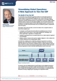 In an ideal world, every multinational organisation would run its entire global operations on a single enterprise resource planning (ERP) application suite. A few do achieve this financial nirvana–but often at significant cost. The rest have to make the best of reconciling conflicting requirements and historic investment decisions to manage what can often be a complex catalogue of different systems scattered across their global subsidiaries. This is the world of two-tier ERP: headquarters run the preferred system of record, while subsidiaries operate a second tier of their own systems, from which financial information must be consolidated to provide a comprehensive view of the business.